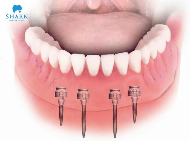 - Full-arch implant restoration: In certain cases, the dentist may place 4 to 6 mini dental implants into the jawbone to support a full-arch restoration, utilizing a variation of the all-on-X dental implant technique. This technique requires advanced expertise and equipment and should be performed at a reputable dental clinic with modern technological support.